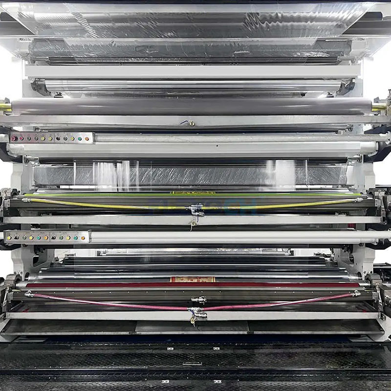 เครื่องพิมพ์ Full Servo Stack เป็นเครื่องพิมพ์เฟล็กโซกราฟีหลายสีซ้อนกันที่ขับเคลื่อนด้วยเซอร์โวมอเตอร์ทั้งหมด อุปกรณ์นี้ให้การพิมพ์เฟล็กโซกราฟีหลายสีที่แม่นยำ ความเร็วสูง และมีประสิทธิภาพโดยการควบคุมแต่ละหน่วยการพิมพ์อย่างอิสระด้วยเซอร์โวมอเตอร์ มีการใช้กันอย่างแพร่หลายในอุตสาหกรรมฉลาก บรรจุภัณฑ์ และการพิมพ์ฟิล์ม เซอร์โวไดรฟ์แบบเต็มช่วยเพิ่มความเร็วการตอบสนองของเครื่องและความแม่นยำในการควบคุม ทำให้มั่นใจในคุณภาพการพิมพ์และประสิทธิภาพการผลิต